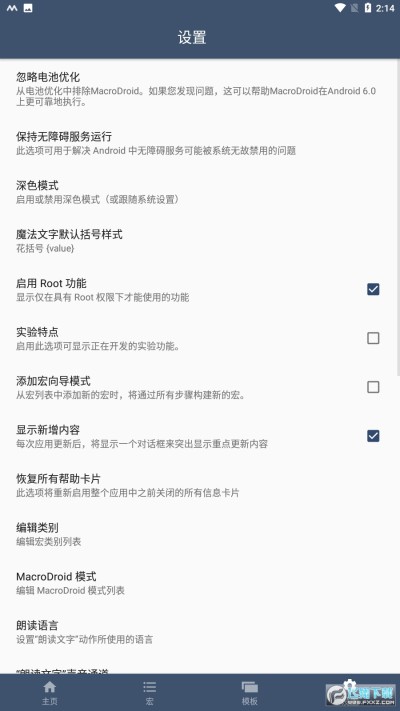 功能按钮中标注有Root的需要获得Root权限,标注ADB的需要通过ADB工具打开Macrodroid的ADB权限,同时标注的任意条件达到就可以使用