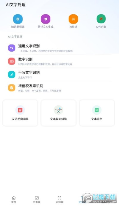 文字类:有暗语翻译、营销文AI生成、AI作诗、AI对联、通用文字识别、手写文字识别、发票识别等等,看不懂别人写的字,直接识别;什么藏头诗、营销小作文一键生成。