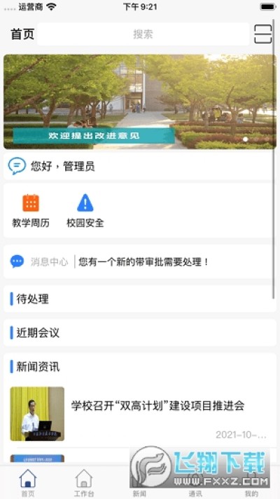 1.行政管理可以看到校园的联络记录数据和工作通知信息。