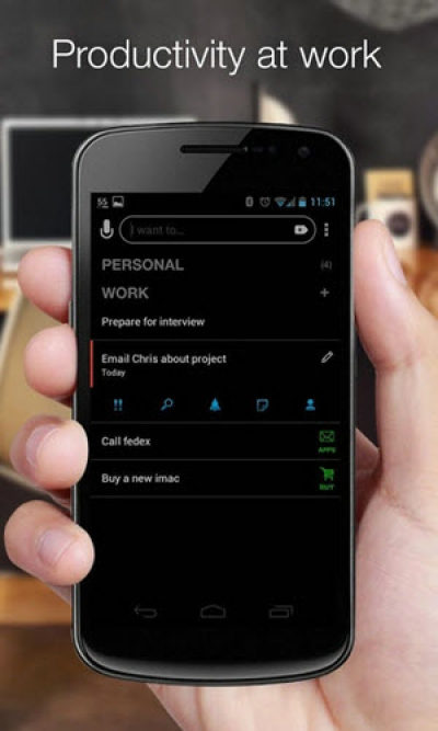 触按麦克风图标,说出要做什么。Any.DO会自动将话语转换成文字。