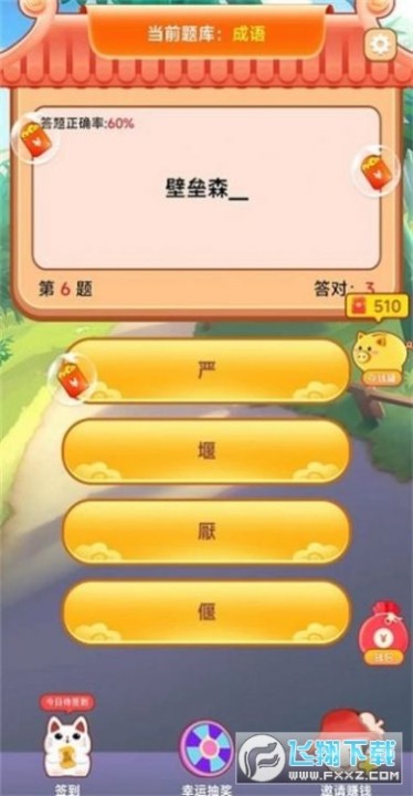 2、成语接龙的方式,系统已经给出了三个字,只要你找到最后一个。
