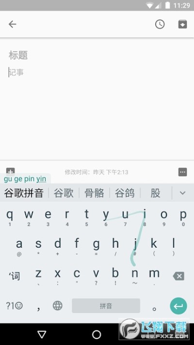 谷歌输入法3.0默认即可滑行输入中文,使用也十分简单,在26键布局中,你需要用到什么按键,连续在这些按键间滑行即可。