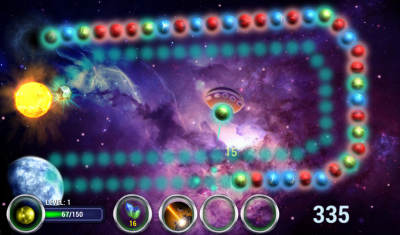 这款游戏讲述了这样一个故事:玩家作为星际巡洋舰的队长,开始了一场了星际穿越式的时空之旅。你要做的就是,每到达一个星球,通过祖玛这种方式,来完成对这个星球的征服,在这个过程中,玩家可以利用收集的矿石来升级自己的飞船。