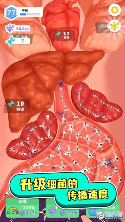 不要忘记升级细菌的传播速度,以尽快侵占人体。