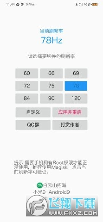 重要:更改完刷新率请不要清除软件数据/卸载,否则可能会无法还原到60Hz(这种情况只能重新刷镜像文件);