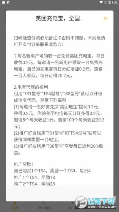 6、首页点击,领取一台免费电宝,提0.2秒到,然后点击我的电宝,等待24小时候分红后提现