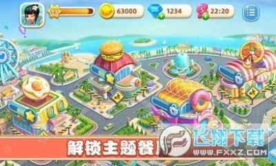 汉堡、薯条、披萨、寿司、麻辣烫、北京烤鸭……在特色主题餐厅的厨房中展现您的烹饪技巧。当然,别忘了升级你的食材和厨具。升级食材会让菜肴看起来更加美味,增加您的收入!高级的厨具也会让烹饪更加得心应手!