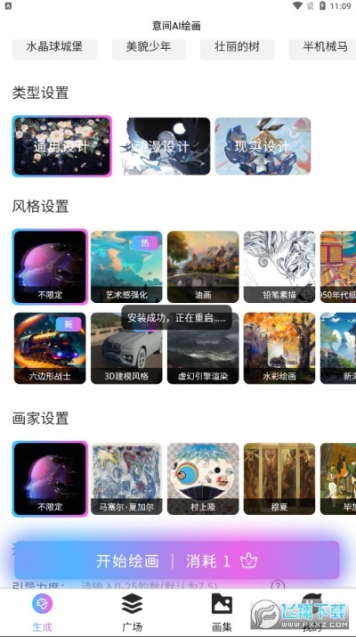 意间ai绘画创意云下载手机版是官方推出的手机版本,支持用户在手机上下载意间ai绘画,直接在手机端口就可以进行操作,自定义的参考图,自由发挥你的想象吧!根据你的想象会生成独一无二的画作,感兴趣的赶紧下载体验吧!