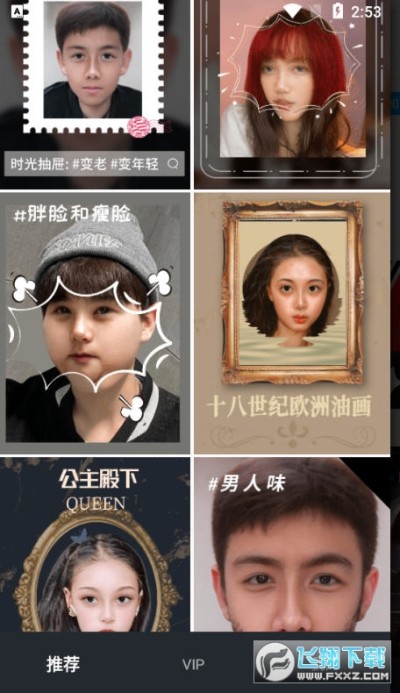 2.facecue 利用ai技术,帮你的头像实现超过40种特效,包括油画,素描,美漫,日漫,卡通,浮雕,立体,公主,王子,变胖,变瘦,变老,变年轻,换发型,换发色,涂口红,加胡子,戴眼镜,变表情等,让你的朋友圈与众不同!同时,ai团队会持续研发更多新奇酷特效和功能,让facecue为您的虚拟世界带来更多惊喜!