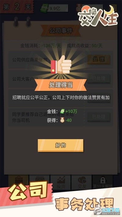 交换人生这是一款非常有趣的模拟游戏。在这个游戏中这是一款拥有着清晰画面设计打造的都市游戏,能不能同样完美,当你从一个默默无闻的小人物摇身一变成为商业风云人物,有贫穷有富贵,喜欢的朋友快来游戏试试吧。