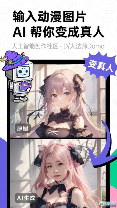 大画家Domo社区支持选择输出高清(1920×1280)/超清(3840×2496)尺寸的AI画作;