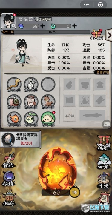 2、稀有装备打怪就爆,爆率超高,可以换成相同的法宝,升级修为战力。