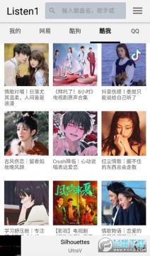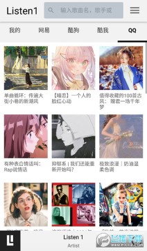 1、首先打开listen1安卓版2023最新版,进入首页可以看到有网易、酷狗、酷我以及QQ几大平台的歌单推荐。
