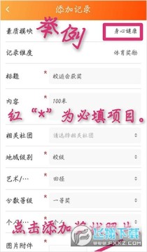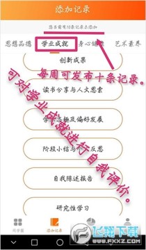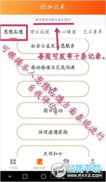 2.添加记录数据,可选择素质模块与记录维度进行记录的添加,获取综评得分;