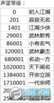 (行侠仗义还有大量名声,累计一定数额能增加武学格子)