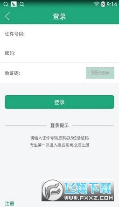 3.输入证件号码、密码、验证码,登录网上报名系统。