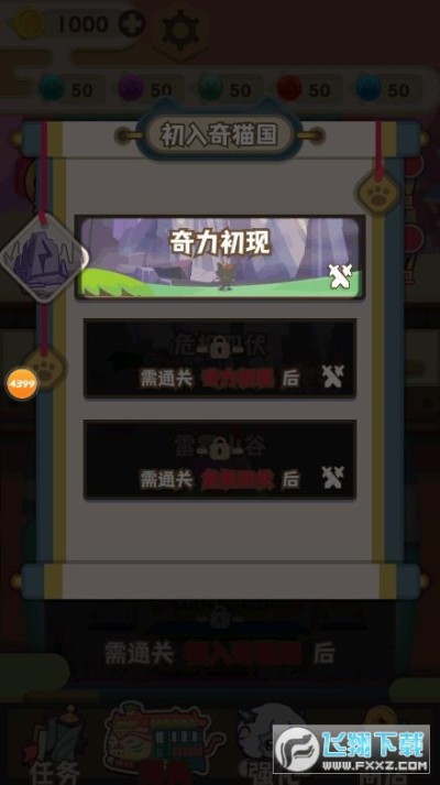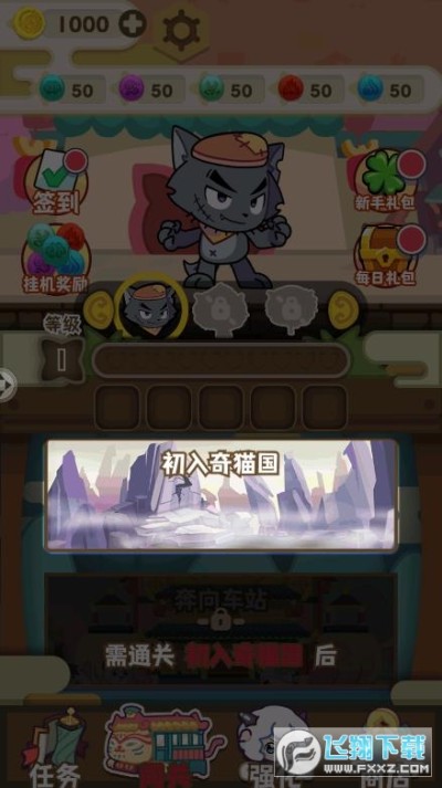 通过初入奇猫国就可以解锁新的奔向车站章节。在下方可以强化人物同样也需要金币,右边是商店我们完成任务也可以获得金币玩家要合理分配金币的使用哦。