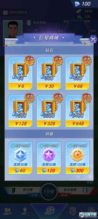 玩家可以点击“升级”按钮来升级玩家的等级。玩家的等级越高,玩家的能力发展空间就越高。所以,要想把普通球员培养成巨星,提高球员排名是每个主教练必须考虑的问题。