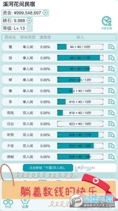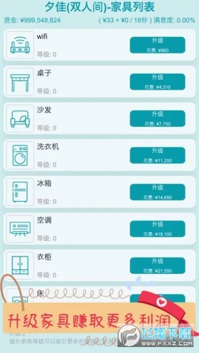 2.多种升级选项可以升级房间.设备.员工等,提高民宿的服务水平;