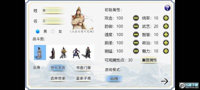 开启隐藏人物雪羽宗前宗主杨冰羽,直接进入游戏默认选择,100点各项基础属