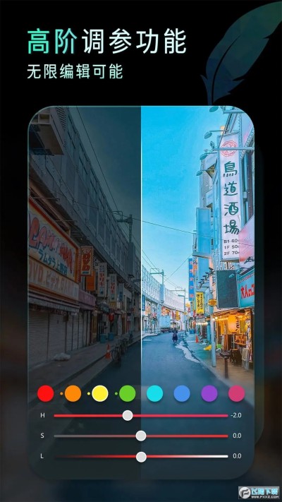 支持14种高级编辑调节工具:HSL,饱和度,褪色等,释放p图创意。