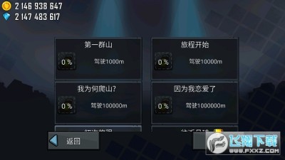 游戏会记录玩家每个关卡到达的等级和最大距离,用获得的奖金可以在在车辆选项里面换新车,不过对一个小游戏也不用指望有什么种类丰富的车可选,总共就三两,一辆普通吉普车,一辆大轮越野车,一辆看起来略牛逼的跑车。此外玩家还可以升级车辆的四大部件,让车子获得更好的驱动力、弹跳和平衡性,争取到达更远的距离。
