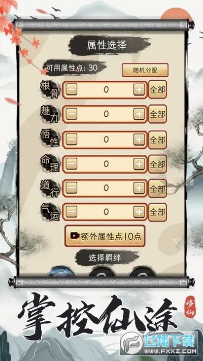 自由选择出身,体验不同的开局,可以是商人世家有金钱支援,亦可以是平民的地狱开局。还有属性点、道心值和天赋,供玩家分配。