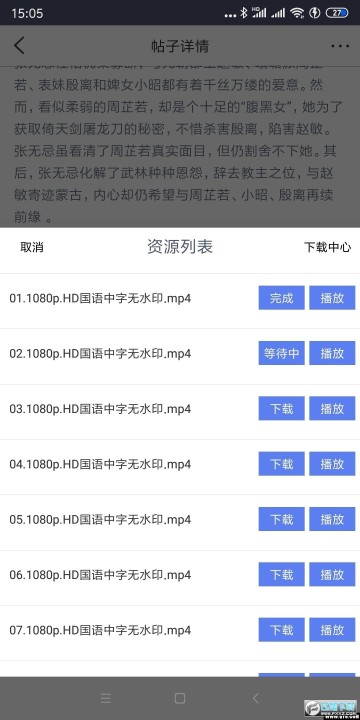 2.下载的内容可以进行各种操作,如重命名或删除,或复制地址等。