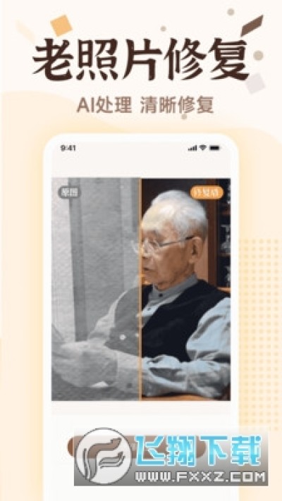 老照片画质修复是一款针对老旧照片上的折痕、不清晰、划痕等地方进行人工修复恢复照片,同时提供黑白照片智能上色的功能,变老相机的趣味功能,手机照片的查找的功能,是主打照片的一款应用。