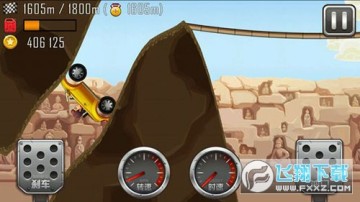 游戏操作非常简单,简单到根本无需新手教程,在屏幕下方的左右两侧分别有刹车和油门按键,我们通过点击游戏来加速,而刹车则是在下坡路段速度控制不住时派上用场!
