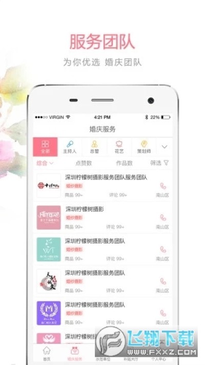 团队可通过发布作品的形式,为用户展示服务特点,并提供给用户线上婚庆服务档期约定服务,方便团队档期安排和管理。