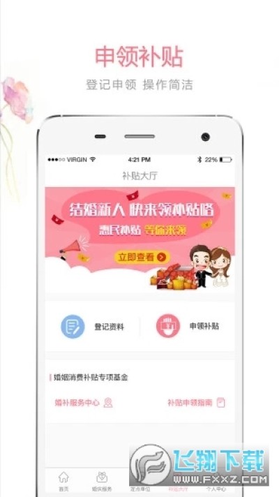 婚补通是一款智慧城市生活应用app,隶属民政部中国社会工作联合会下属的婚姻消费补贴基金。
