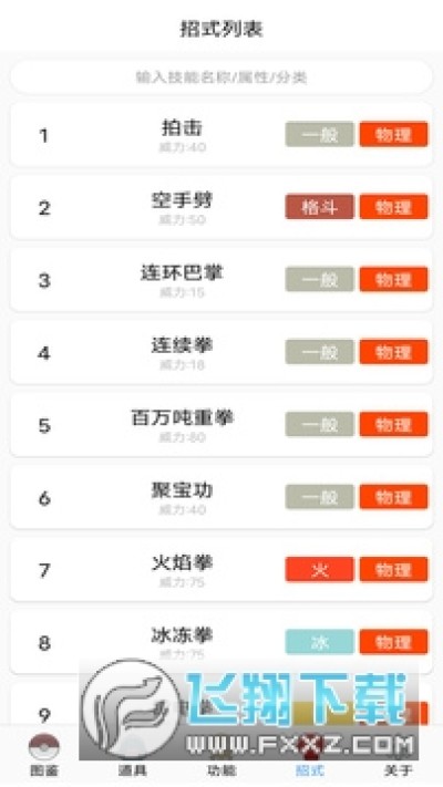 技能列表:包含了全部的宝可梦技能;