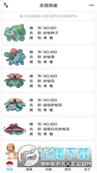 PokeDex功能宝可梦图鉴:宝可梦的基本信息、金华路线、招式学习、图鉴说明、类型相性。