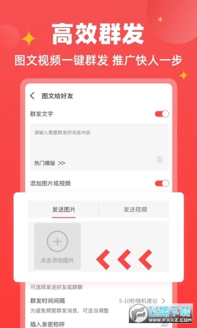 一键群发到群,群发到好友,快速的分享产品消息,节省手动转发工作量。