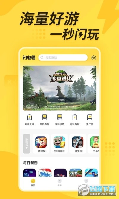 闪电龟app是一款官方出品的游戏盒子辅助类软件,软件每天都会为用户推荐最热门好玩的手机游戏,海量的分类栏目等你选择,用户还可以随时搜索游戏名,在线下载试玩不等待!对软件感兴趣的话不妨点击下载试试!