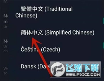 4、最后在打开的下拉选项中,点击简体中文,如下图所示就完成了。