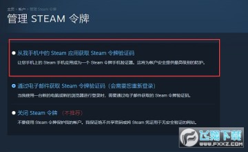 3、进入管理steam令牌界面,勾选从我手机中的steam应用获得令牌认证码。