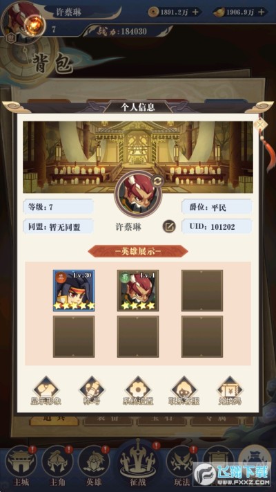 历史名将,依次登场,需要你用武力征服他们。游戏中武将分为不同的质量,质量越高,实力当然也越强。