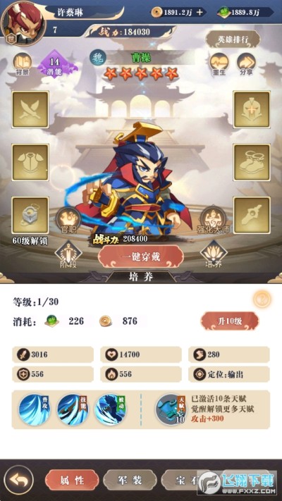 历史名将,依次登场,需要你用武力征服他们。游戏中武将分为不同的质量,质量越高,实力当然也越强。