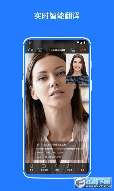 【多种会议场景】 自由讨论会议、语音会议、PTT对讲、视频直播等 网络研讨会,万人观看直播; 同声传译实时口语,支持中英等几十种语言。 实时语音识别,会议笔记,自动把语音转化为文字及多语言字幕;