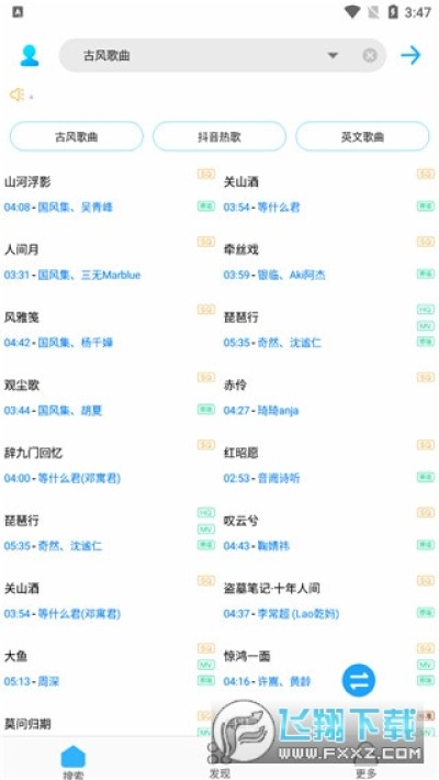 3、按照关键词即可快速搜索,还拥有抖音以及多个热门音乐分类。