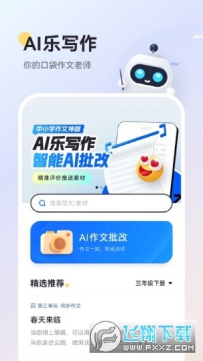 Ai乐写作app最新版是专为用户提供的一个手机AI写作辅导工具,在这里用户可以通过软件AI作文批改,超全小学作文精讲课随时在线查看,还可以智能推送作文素材帮助在线学习,欢迎有需要的小伙伴前来下载!