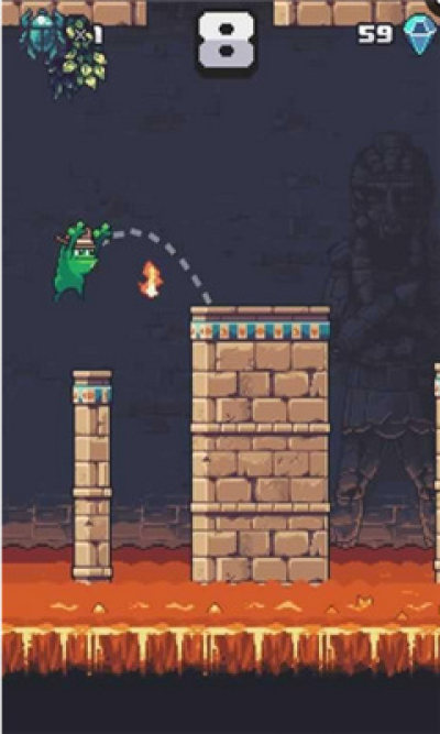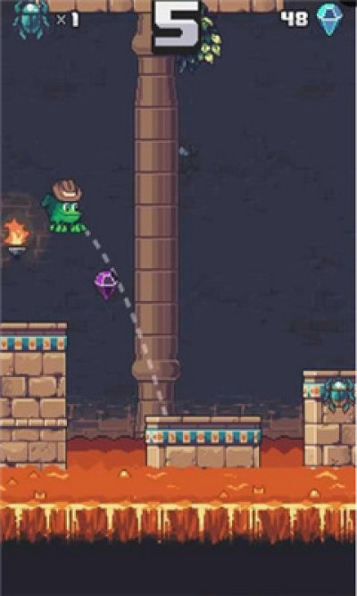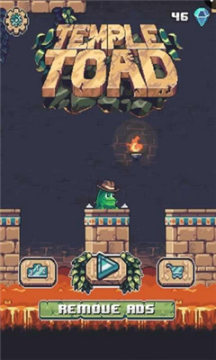 《蟾蜍跳跃 Temple Toad》是一款挺需要手速的敏捷类游戏。玩家需要控制绿色小蟾蜍来进行平台跳跃,如果有什么差错的话就会掉进下方的熔岩或者是被身后的钉刺给消灭掉,所以赶紧前进才是关键。游戏操作很简单,蟾蜍会一直不停的跳跃,它身前的那条虚线就是你按一下屏幕它会往前跳的轨迹,看好轨迹按屏幕让蟾蜍跑的更远吧!