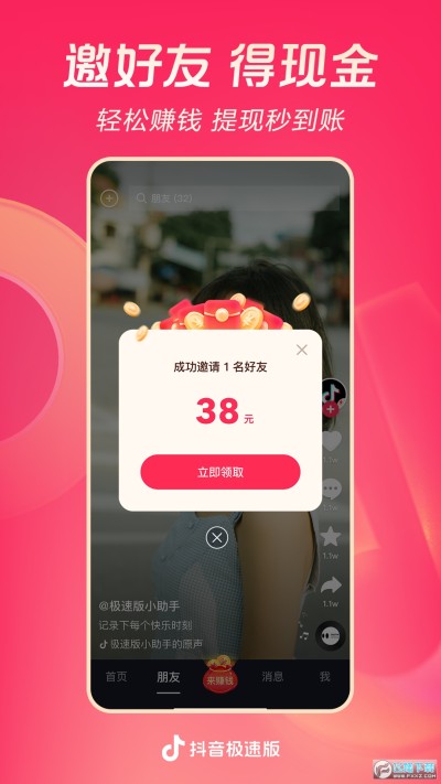 抖音极速版看视频赚钱,注册就送几元,看视频1分钟再送1元