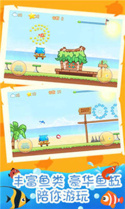3、游戏背景声音随着小鱼一起跳动,比较的好听,让你忘记一切烦恼,投入到游戏中