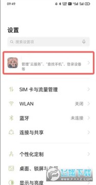 2、打开oppo手机中的【设置】后,在最上方点击自己登录的【账号】进入账号管理设置;