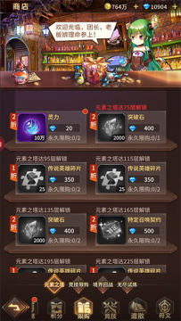 (1)元素塔:突破石、灵力以及金币三大必需资源的产出地,每通过闯关10层,都会有一个礼盒奖励,里面有传说英雄碎片、史诗级传说级高星装备,还有超稀有的光暗属性碎片。元素之塔限购商城里面有各种限购的稀有道具。看到这么多的奖励,都是超低折扣的,小艾也是忍不住要买买买呀~