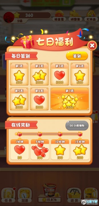 2、经营养成类型风格,新人登录后按提示操作几下即可拿到0.3,后续升级超市还可再拿一些红包。