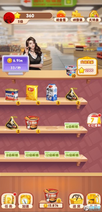 2、然后通过赚取的利润不断扩大超市的经营,从而体验成功经营一个超市的成就感。